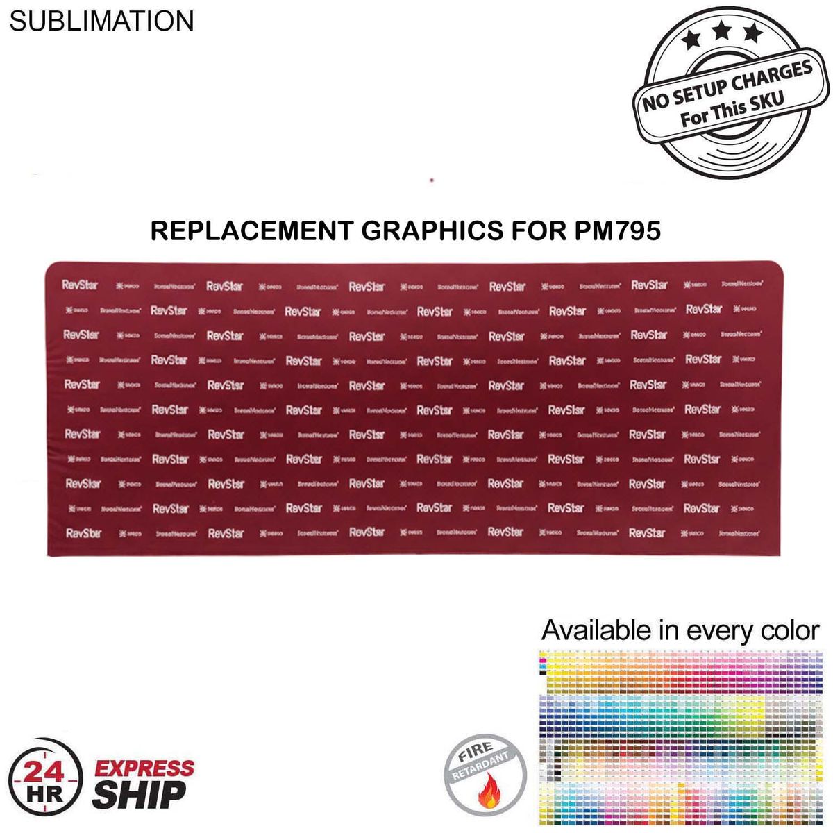 Out with the old, in with the new with replacement graphics. Replacing Graphics takes seconds and is convenient. This Large 20' wide Double-sided graphic Tension fabric cover is viewable from both the front and back of the display for maximum visibility. You can do different graphics on both sides. Graphics can be whatever you want, step and repeat, Photo images, full colors logo (s). Hardware and carry bag not included.Usage: Display kit, Media Wall, Tradeshows Back drop, Zoom Meetings, Photo Backdrop, Corporate events, Wedding and Party photo backdrop, Press Conferences, Interviews, Retail, Events, Offices. Price includes full color graphics. Max Imprint: 240" x 96"LNormal Production Time