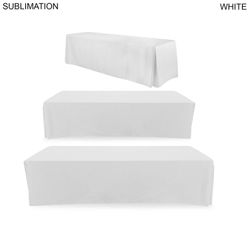 Four-sided table cover creates a lasting impression. Simple storage. Closed back makes it easy to hide materials underneath table. This table cloth will fit a standard 10' table. Compliant with flame retardants for exhibit halls. Usage: Presentations, trade shows, retail stores, events, school functions, fundraisers. Price includes full color sublimation. Max Imprint: New Size: 178" x 87"L.